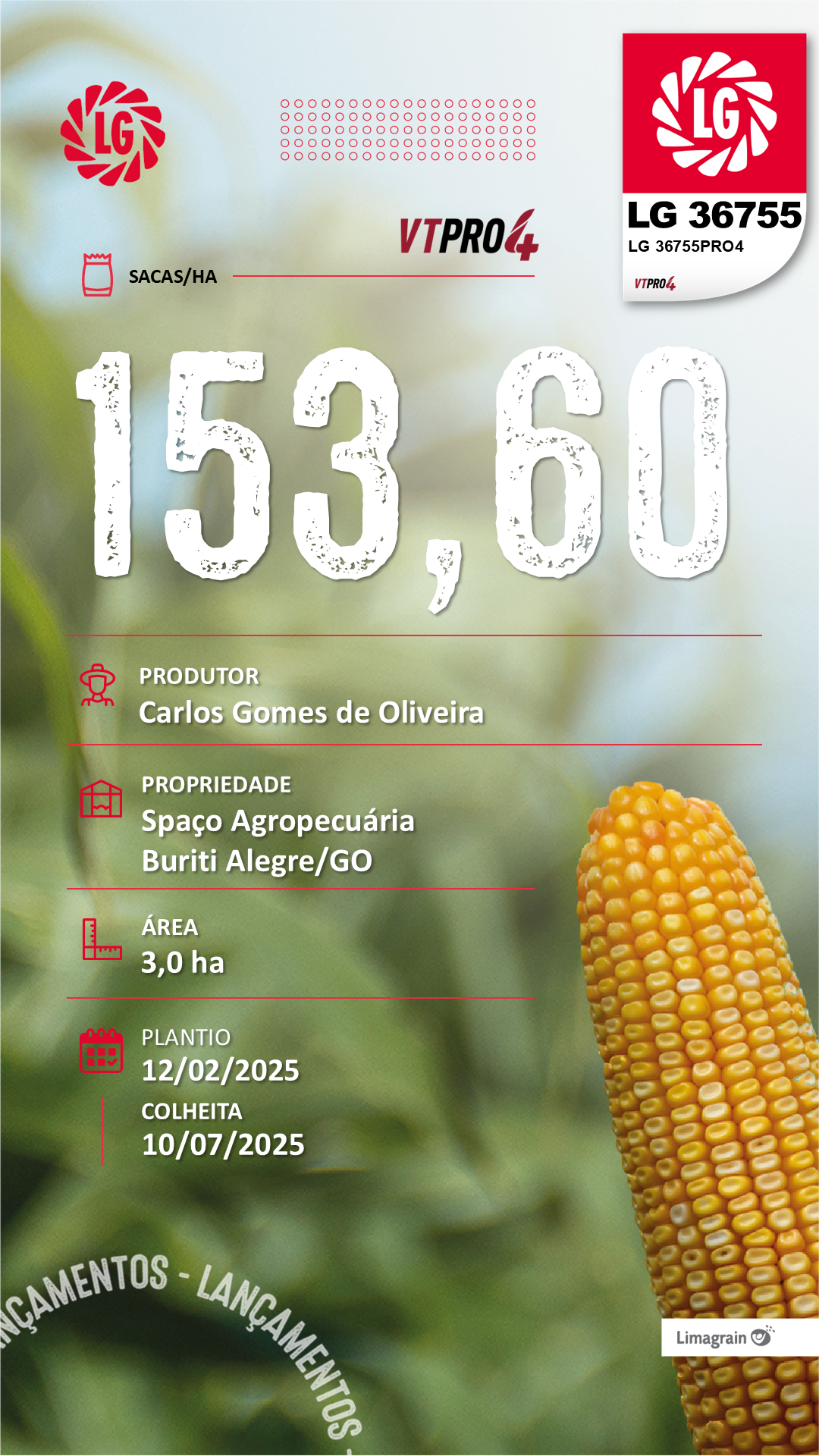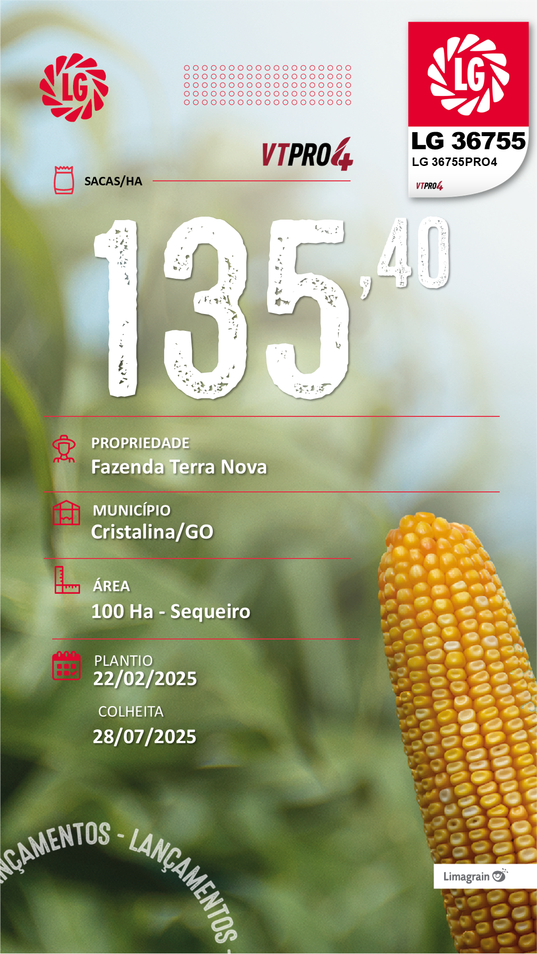 - Responsivo ao uso de tecnologia e manejo;