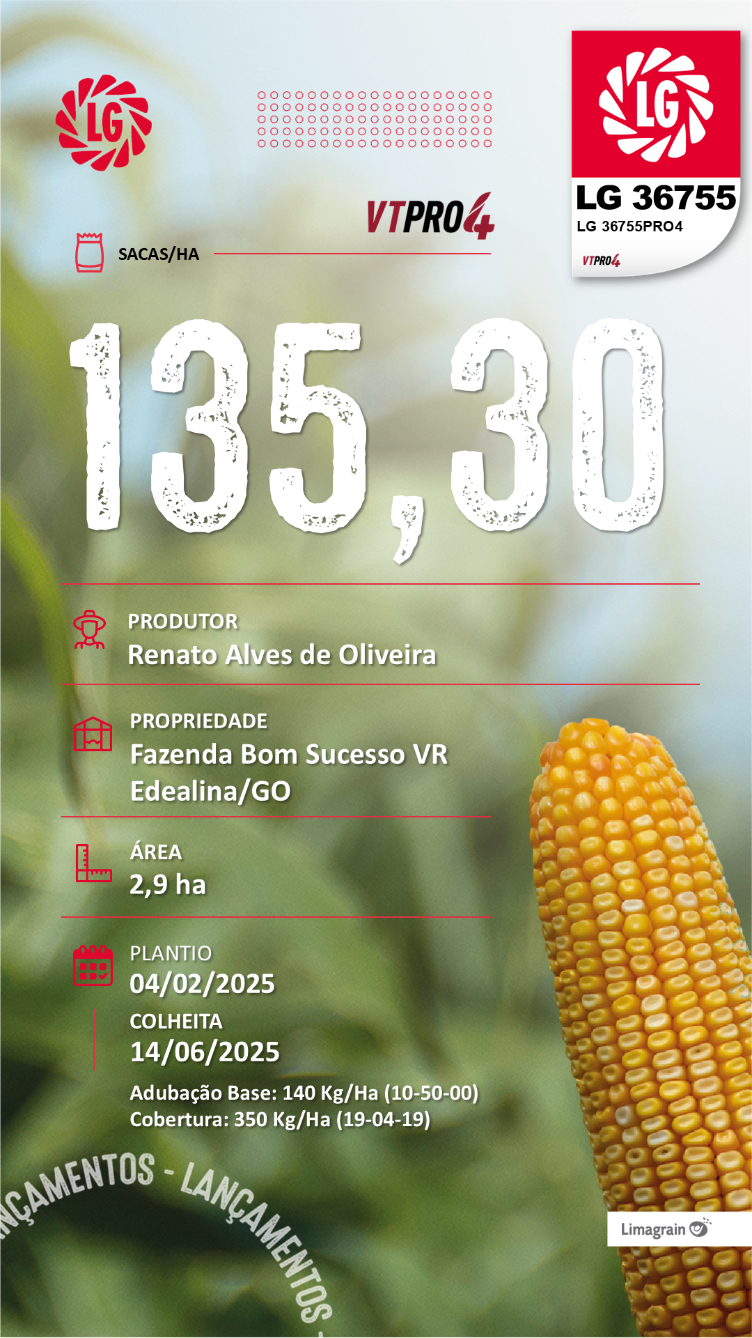 - Excelente tolerância à doenças foliares;